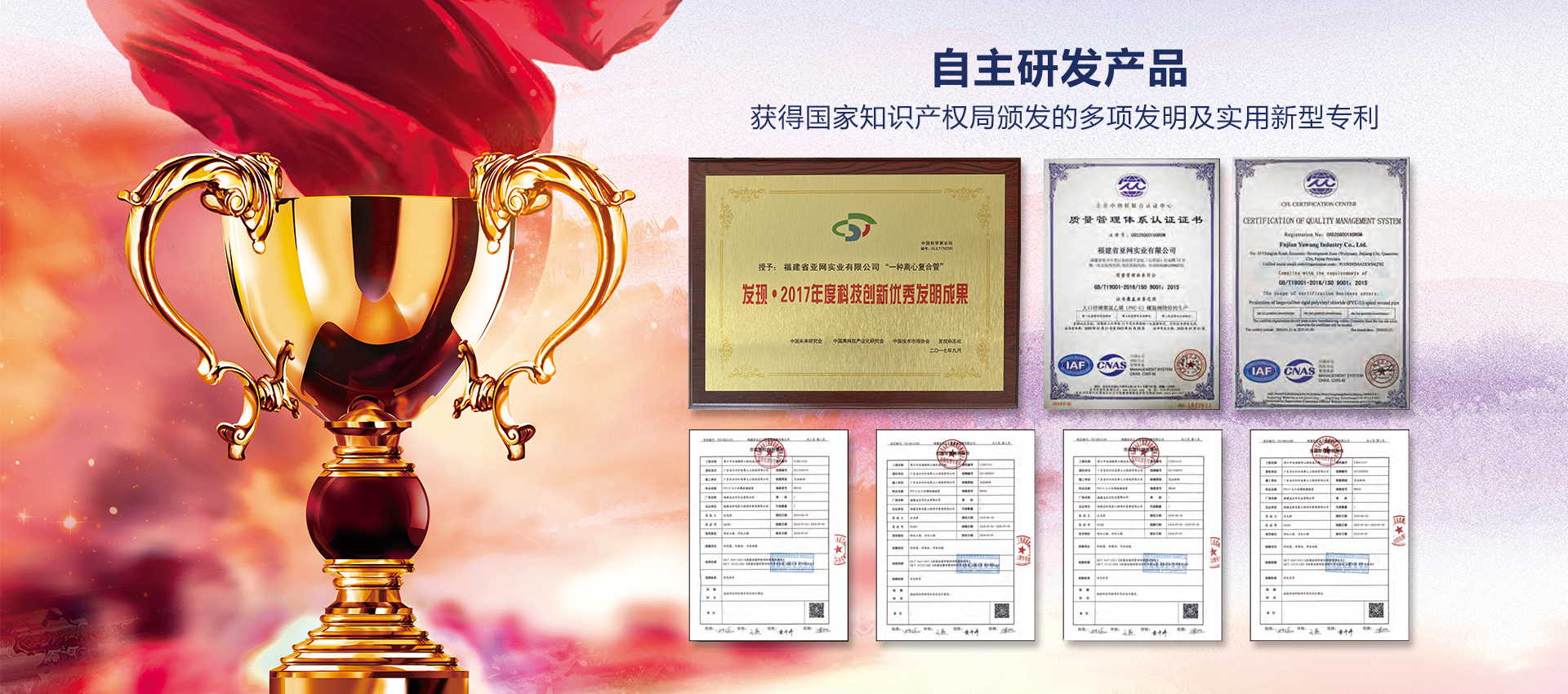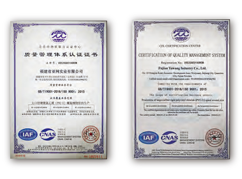 福建省亚网实业有限公司是一家集研发、设计、施工、生产、销售和系统集成为一体的高新技术企业,主营的新技术、新材料的产品有:大口径硬聚氯乙烯(PVC-U)螺旋缠绕管(排污、排水)、机械制PVC螺旋缠绕管非开挖带水修复技术、硬聚氯乙烯(PVC-FRP)离心复合管等产品。拥有大口径硬聚氯乙烯(PVC-U)螺旋缠绕管、机械制PVC螺旋缠绕管非开挖带水修复技术、硬聚氯乙烯(PVC-FRP)离心复合管等技术的自主知识产权,上述产品技术获得国家知识产权局颁发的多项发明及实用新型专利。