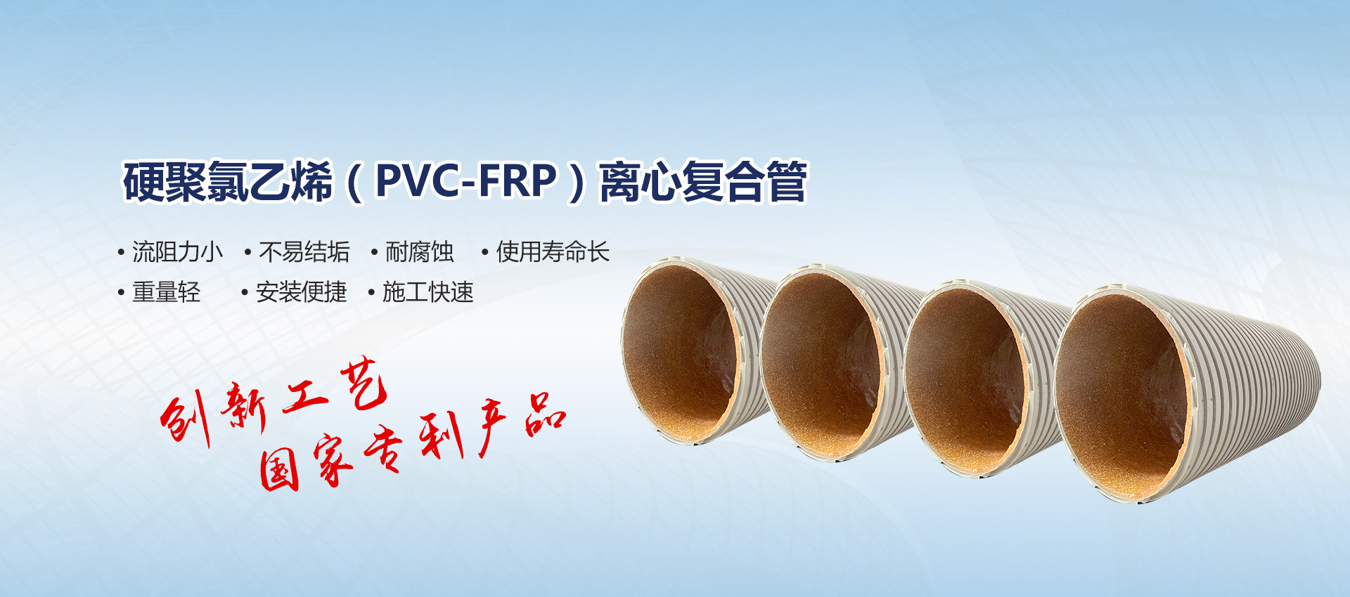 拥有大口径硬聚氯 乙烯(PVC-U)螺旋缠绕管、机械制PVC螺旋缠绕管 非开挖带水修复技术、硬聚氯乙烯(PVC-FRP)离心 复合管等技术的自主知识产权.